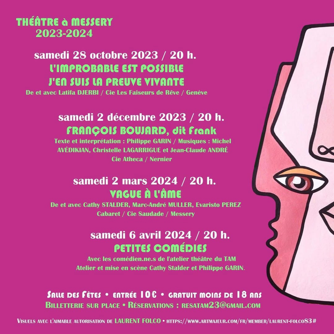Et oui, Le TAM possède sa propre troupe ! Composés d’habitants de la ville se retrouvant chaque semaine tout le long de l’année pour des ateliers, exercices, moments conviviaux et surtout, la conception de spectacles originaux; la troupe du TAM est ravie de pouvoir intégrer la saison théâtrale de Messery.